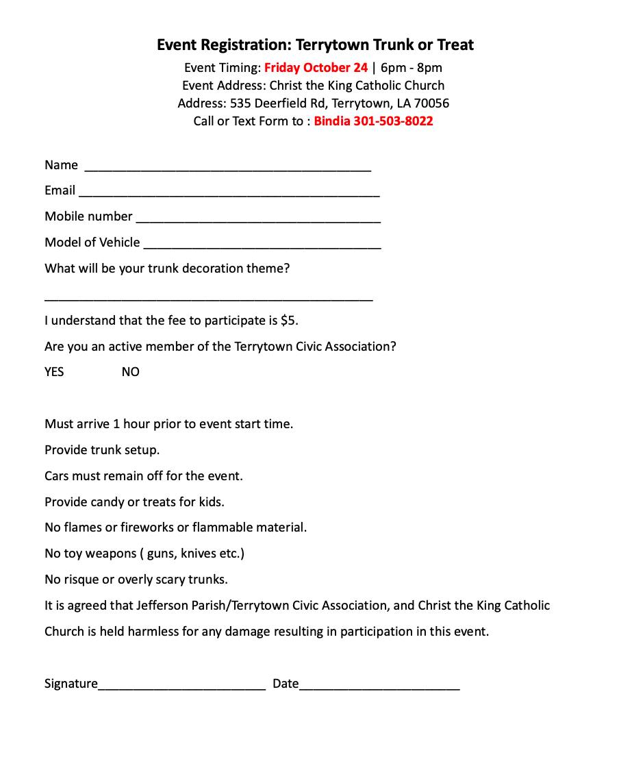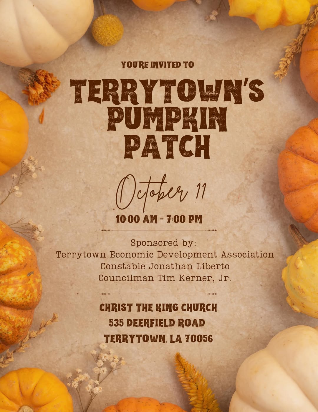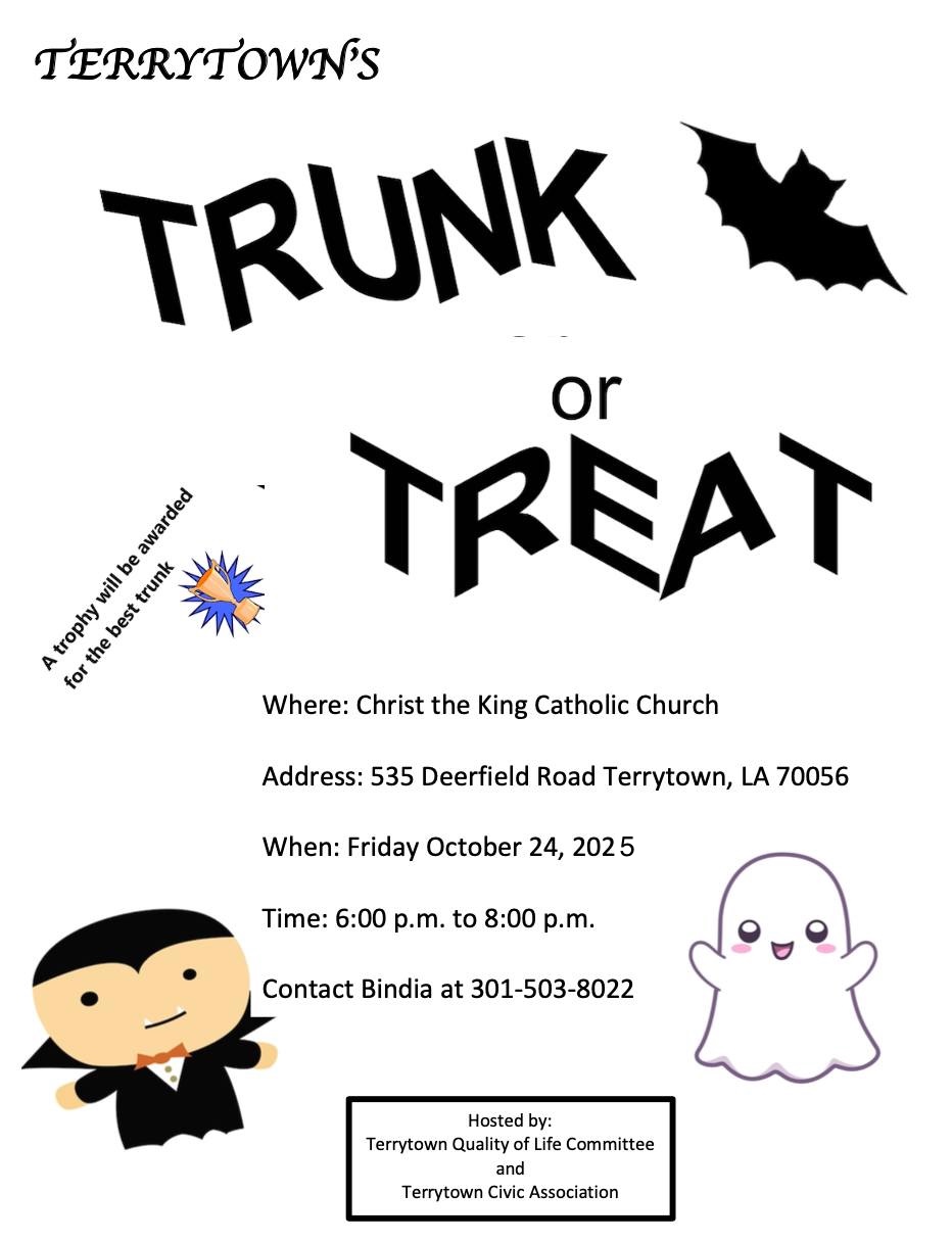 Local Calendar 2025January 1New Year’s Day HolidayNo MailJanuary 8Christmas tree curbside pickupGuidelines for collectionJanuary 20MLK HolidayNo Mail, No GarbageFebruary 17Presidents DayNo Mail, Garbage YesMarch 4Mardi GrasNo MailMarch 8Terrytown Food Truck FestivalTerrytown PlaygroundMarch 29Election – PrimaryVoting InformationMay 3Election – RunoffVoting InformationMay 26Memorial DayNo Mail, Garbage YesJune 19Juneteenth HolidayNo Mail, Garbage YesJuly 44th of JulyNo MailSeptember 1Labor DayNo Mail, No GarbageOctober 3 – 5Gretna Heritage FestivalOctober 7Night Out Against CrimeChrist the King ChurchOctober 11Terrytown Pumpkin PatchChrist the King ChurchOctober 11Election – PrimaryVoting InformationOctober 13Columbus DayNo Mail, Garbage YesOctober 24Trunk or Treat + Registration FormChrist the King ChurchNovember 2Terrytown Farmer’s Market1785 Carol SueNovember 11Veterans DayNo Mail November 15Election – RunoffVoting InformationNovember 15Parish Tree Give AwayRight of Way Planting RulesNovember 27ThanksgivingNo Mail, No GarbageDecember 7Terrytown Farmer’s Market 9am – 1pm1785 Carol SueDecember 25Christmas DayNo Mail, No Garbage 2025 Election Calendar (from LA Secretary of State) Parks & Recreation Information People Program Schedule Jefferson Parish Calendar of Events